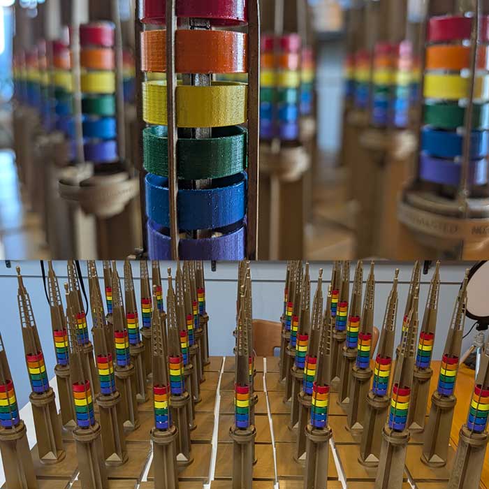 The Legacy Project, a Chicago non-profit that created the 25 foot tall pillars on the sidewalks of the Lakeview neighborhood, wanted mini versions of their pillars to use as table centerpieces for their fundraising gala. We started with very rough blueprints and created a 3D model. Next we iterated through prototypes to come up with a plan for how to assemble the pieces and streamline the production process. And finally, we printed, painted, and assembled 40 pillars, each 18" tall.